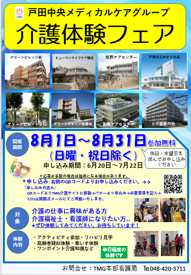 戸田中央メディカルケアグループにて介護体験フェアを開催いたします。